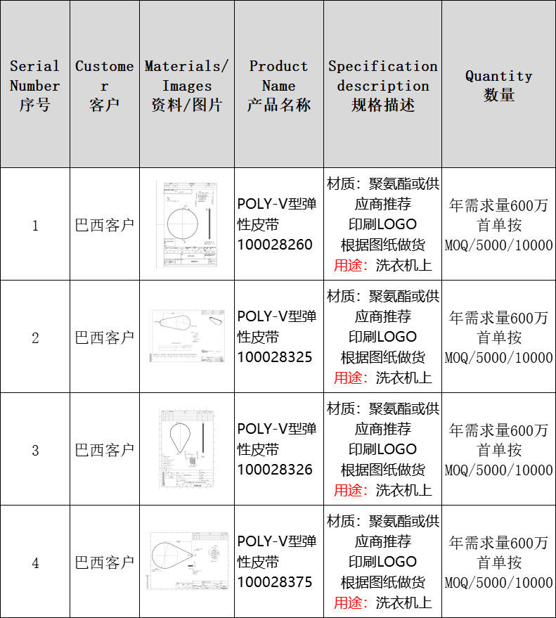 求购:4款弹力橡胶带