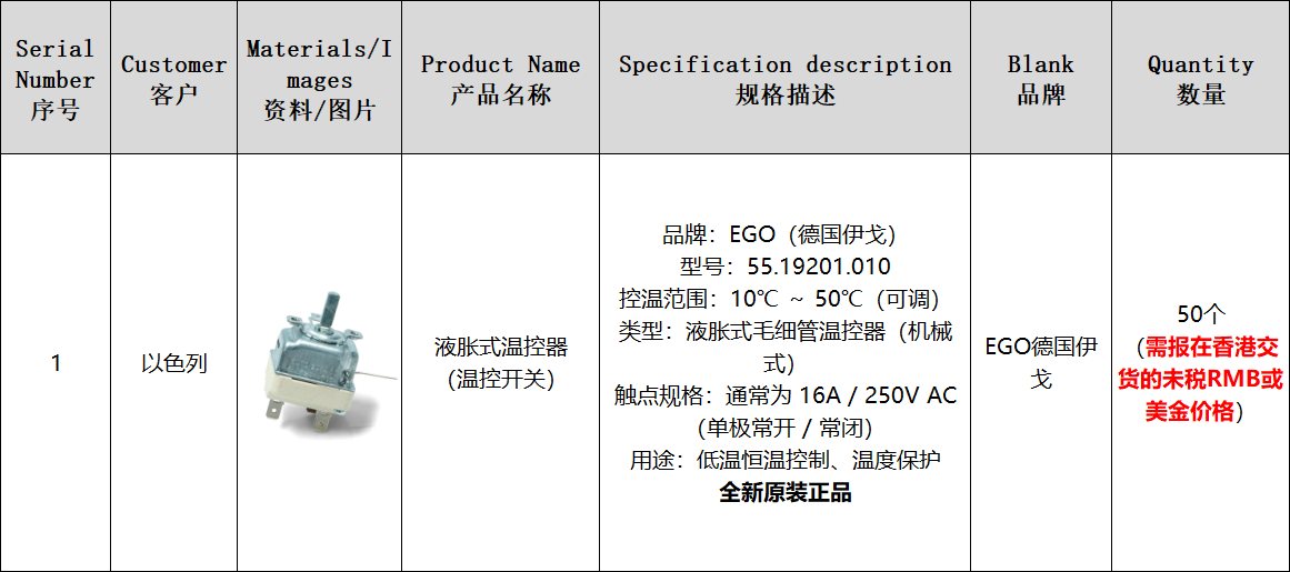 求购:EGO品牌温控开关