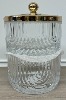 产品尺寸:4.25"W x 6"H,盖子金属拉丝工艺,瓶身竖条纹,2个玻璃主体需叠放