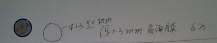 我厂现需采购60000片USA Logo金属圆片,要求规格⊙13.90mm 厚度0.3mm 表面有膜,要求如附图,报 ,欢迎广大供应商前来报价。