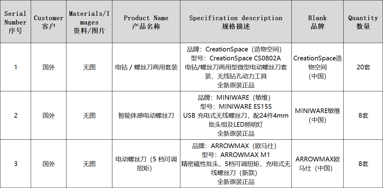 CreationSpace、MINIWARE、ARROWMAX3个品牌电动螺丝刀