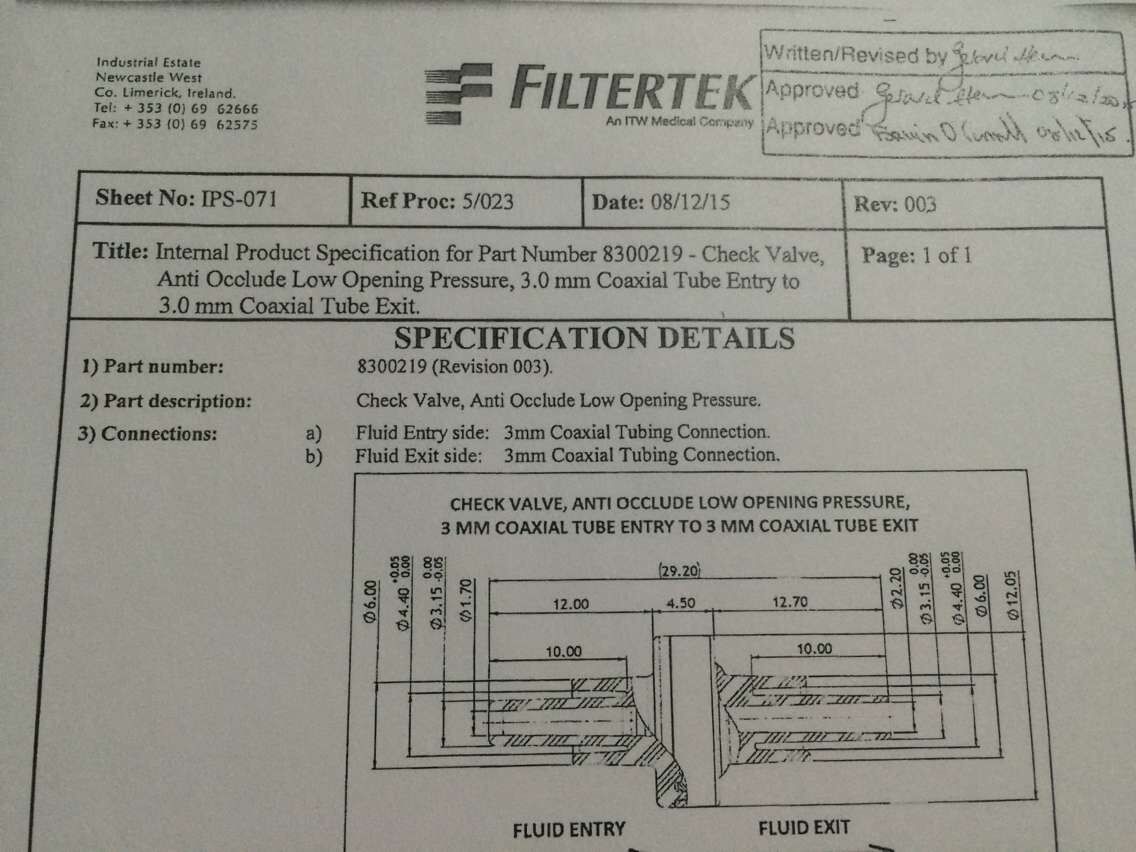 1)反向流量:<0.1ml/小时;室温下水中1m深处。
