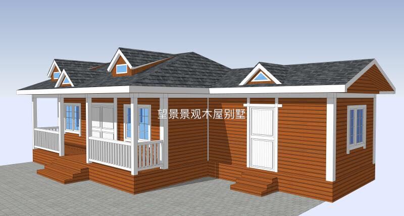 总面积是75平方左右,要求就是用防腐木,底部垫高、需要开老虎窗,需要卫生间