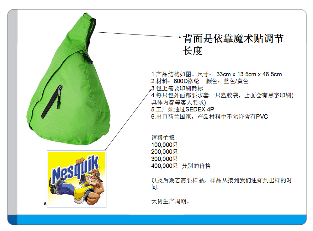 我公司采购三角包,采购量为100000PCS,要求:(1)具体要求请看图;(2)收货地为丽水;(3)报价请报含税含运费价。欢迎报价。