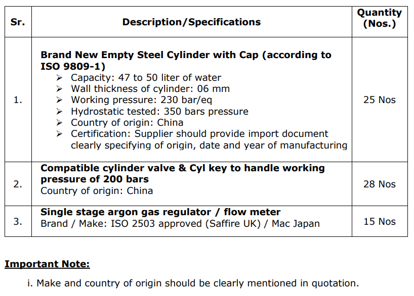 采购钢气瓶和氩气调节器等