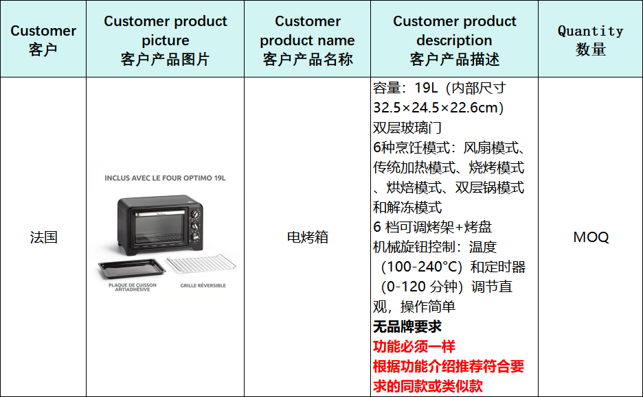 求购:19L电烤箱