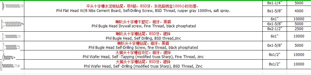 我公司要采购10000000只/年干壁钉,长期采购,规格很多,如图,或供应商联系再给资料,请报不含税的价格,交货地在供应商所在港口,用于出口的,供应商要求是大型的工厂,欢迎报价