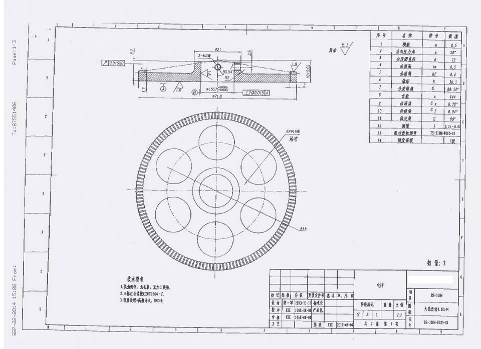 采购齿轮,一套:1个大的加12个小的;材质:45#钢;200套。如附件所示规格,供应商报含税价,收货地点:江苏泰州。欢迎报价!
