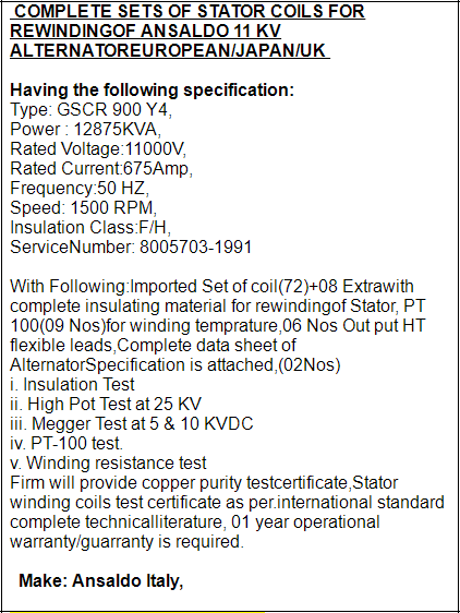 采购定子线圈